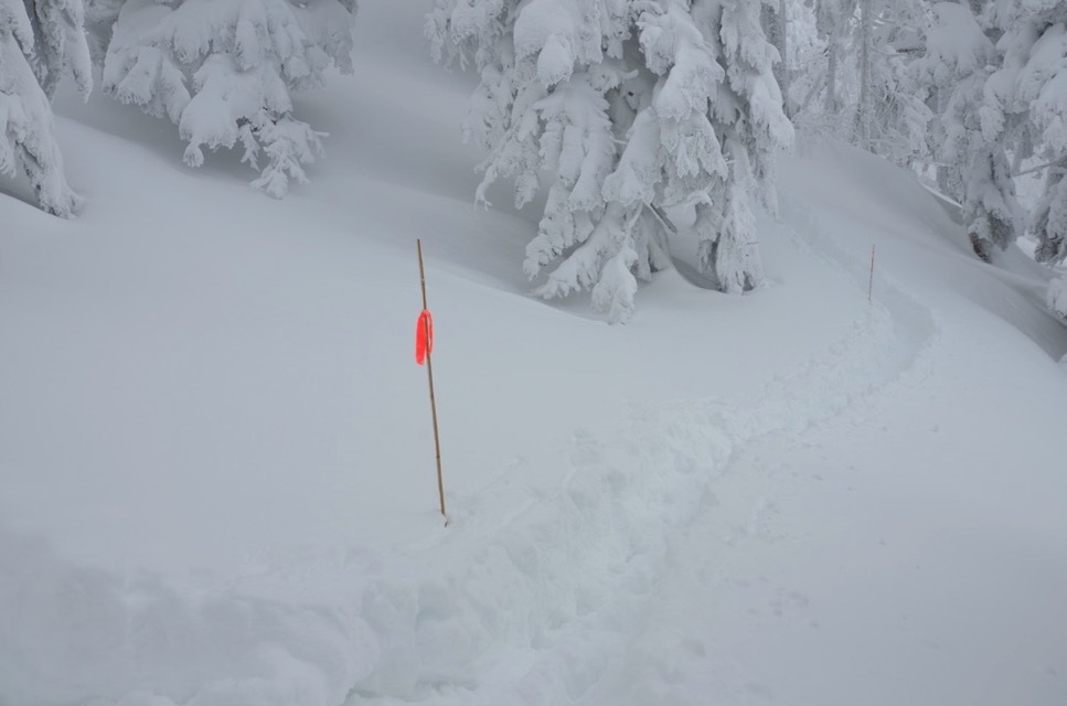 あるいは登山者の安全を守るために降雪の状況に応じて適宜ルートの再設定をしています。だからこを安心して山荘まで登っていくことができます。「冬山はスリーシーズンと違い、いわばバリエーションなのだからルートファインディングも自己責任です」と言うこともできるのかもしれませんが、そのようなことはせず常に登山者の安全を確保してくれています。降雪後でトレースが消えていることはよくありますが、初めてくる登山者でもルート上に設置された旗を辿りながら 迷うことなく山荘まで上がることができます。