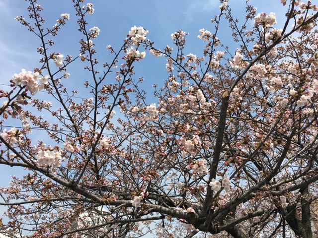 桜が咲くのはとても早いものです。とりわけ気温も春らしく高かったせいで、この写真の翌日にはほぼ満開となっておりました。写真ではまだ蕾が多いのですが自然というのは驚異的でございます。