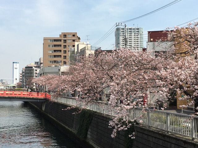 目黒川の桜というと何かと有名でございますが、目黒川も品川区内になりますとほぼ下流でございますが、眺めは良いものでございます。この時期になりますと目黒川を遊覧船が昇ってまいりまして、鮭ではございませんが川登をしている姿が見られます。