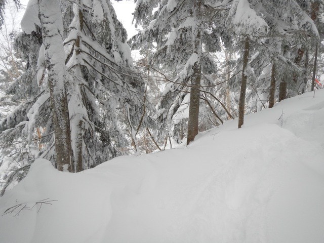 厳冬期の穂高連邦は寒気が入ってくると気圧配置によっては大雪をもたらすことがある。吹き溜まりではあっという間に人の背丈まで積もってしまうことも珍しくない。とりわけ森林限界より下の樹林帯は風も強くなくそのまま着雪するため一度大雪が降るとかなりの積雪となるものである。