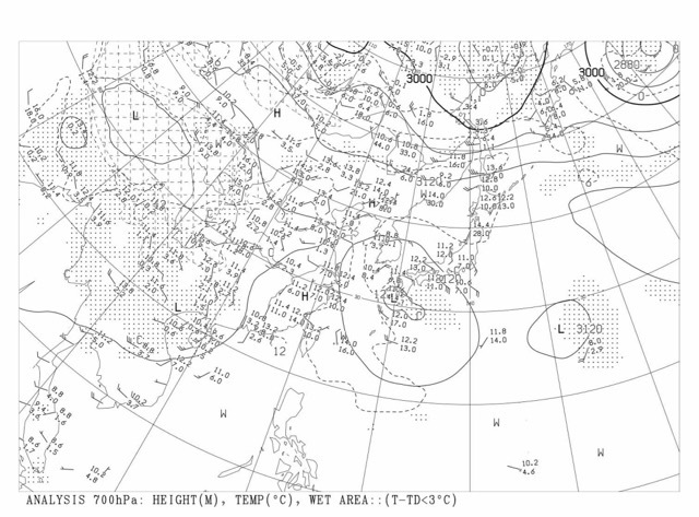 T700 ・・・700hPa気温 → 高度約3000mの気温