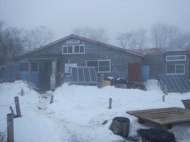 朝食を済ませ下山を開始します。写真は出発時の山荘前の様子です。天気予報とは裏腹に曇りで風が強いです。さすが稜線ですね。天候が良くて予備日が一日あれば、西丹沢方面への縦走も考えなくはなかったのですが、月末に西穂高への登山も控えていることもあり、無理はせず確実にトレースのある大倉方面へ下山することにしました。