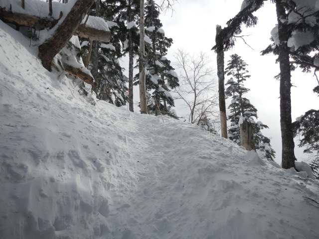 ここは、前回、遭対協の方々と合流した「思いで」というより伝説の場所です。写真では分かりづらいですが、結構傾斜がきついです。