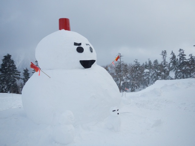 山荘の玄関前には名物の巨大雪だるまが完成していました。えーと、この雪だるま名前がついてるんだよな。なんだったけか??