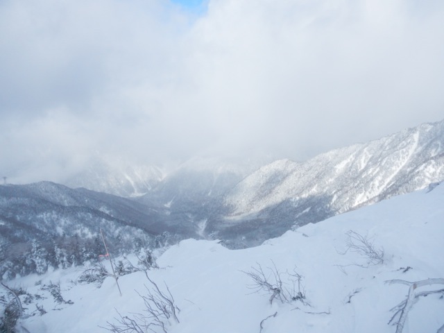麓では晴れ間が覗いていた飛騨高山方面も、山頂ではピッケルがないと歩けないほどの強風に見舞われ、改めて冬山の厳しさを実感しました。