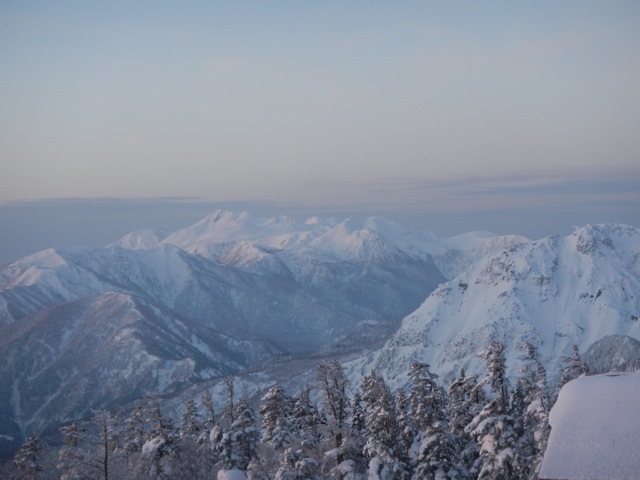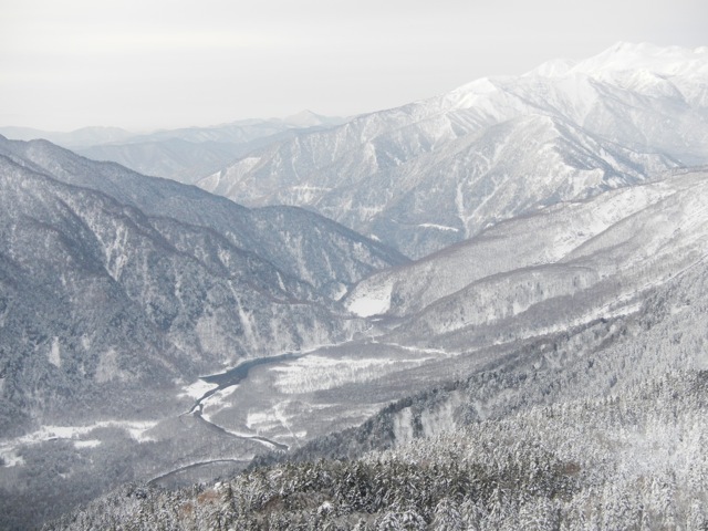 昨年の11月にも同じようなところからこの光景を撮ったのですが、そのときと比べると完全な雪山になっています。それでも今年は雪が少ないのだとか。