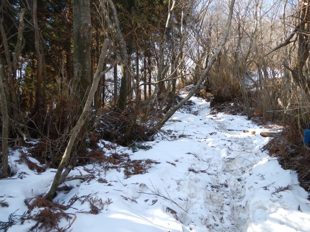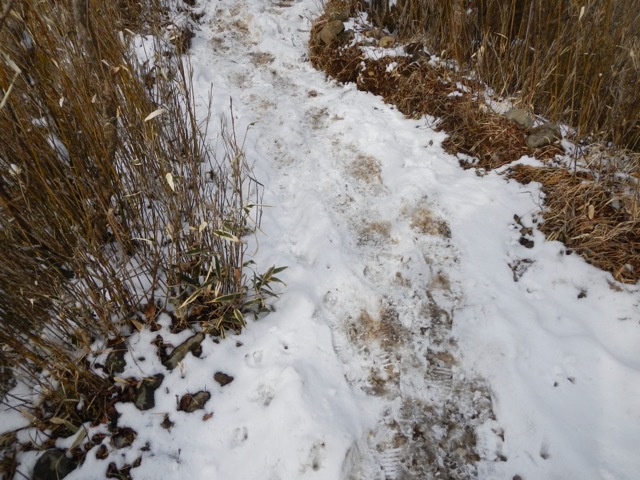 さほど積雪量は多くないです。それでも踏み跡がたくさん残っていますので多くの登山者が歩いたのだということがわかります。