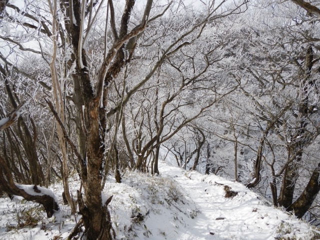 二ノ塔へ向かうこの部分はまだ「積もっている」というには程遠い状態です。もちろんアイゼンなんて必要なく普通に歩いていけます。