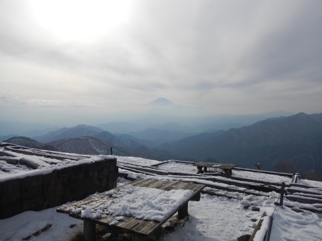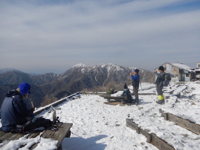 今日これから歩いて行く稜線が全て見えます。一番高いところが塔ノ岳なのですが、やはりあの高度まで上がると真っ白になっていますね。これは期待が持てます。1月に来た時は降雪直後でしたからかなり雪が深かったのですが今日はどうでしょうか。
