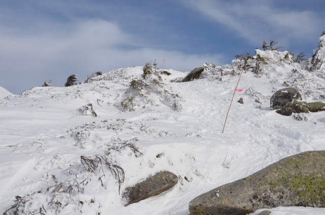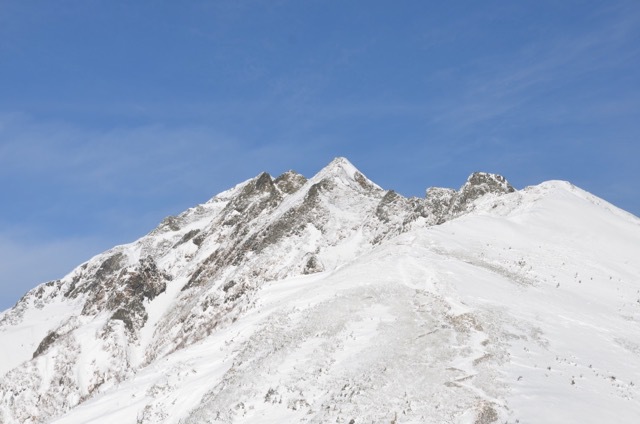 さあ!ラストスパートです。独標の直下は吹き溜まりになることが多く、キックステップで蹴り込んでいかなければならないことが多いので覚悟していたのですが、降った雪の量が少ないからかあまり吹き溜まりになっておらず、拍子抜けしてしまいました。