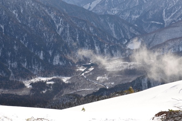 上高地は閉山したあとは歩いていくしかないので、ごく限られた人した立ち入りません。それでも近年はスノーハイクで冬季の上高地に向かう人が多いのだとか。