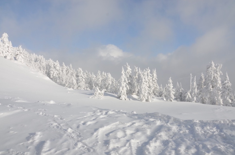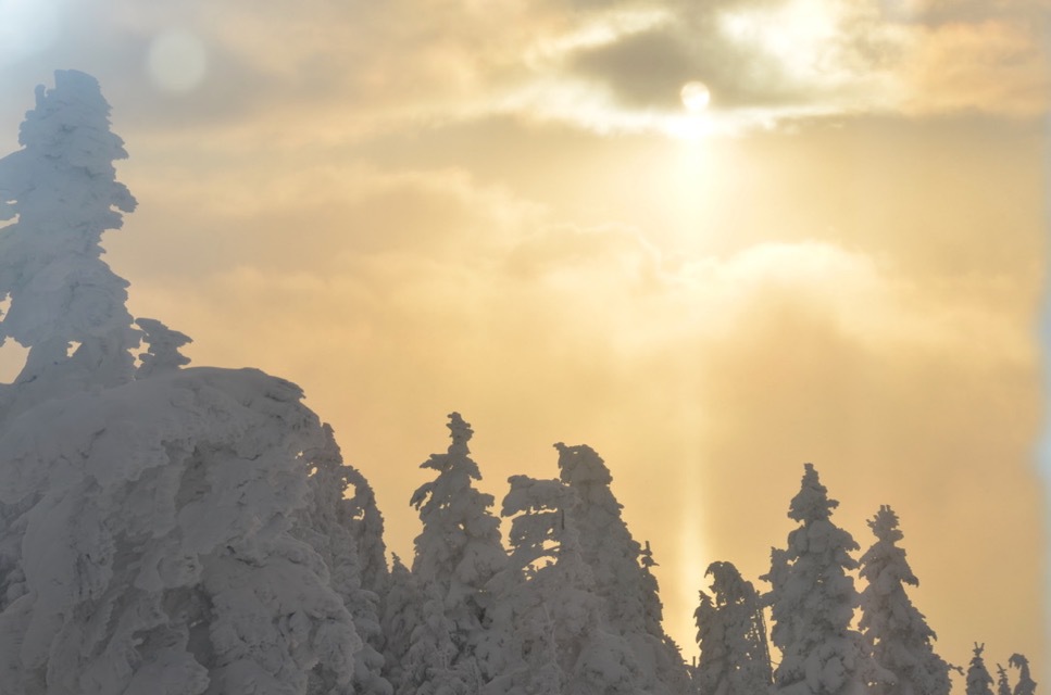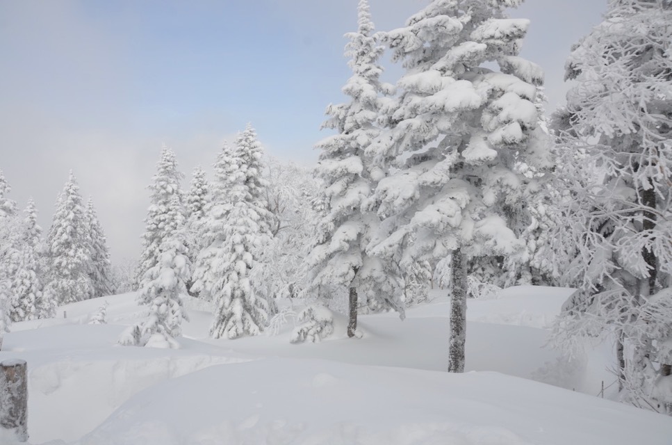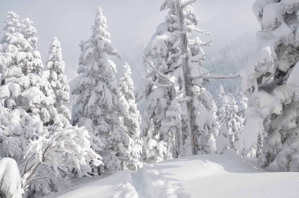 時々日が差してきて木に着雪した雪が美しく輝いています。