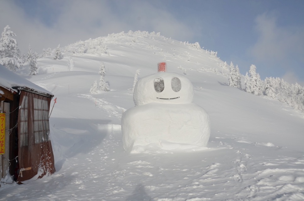 ロープウェイの山頂駅(新穂高口駅)に到着しました。もっと天候が崩れるかと思っていたのですが、上空には青空も見えており薄日も射していて思った以上に天候は良く一安心します。ロープウェイ駅を出たところにある簡単な散策地である「千石園地」の様子を見ますが、直感で極端な積雪はないのではないかと思い、とりあえずワカンなしで進んでみることにします。