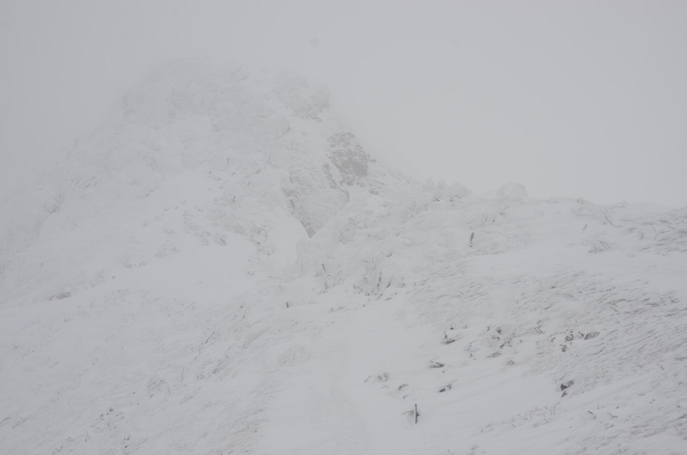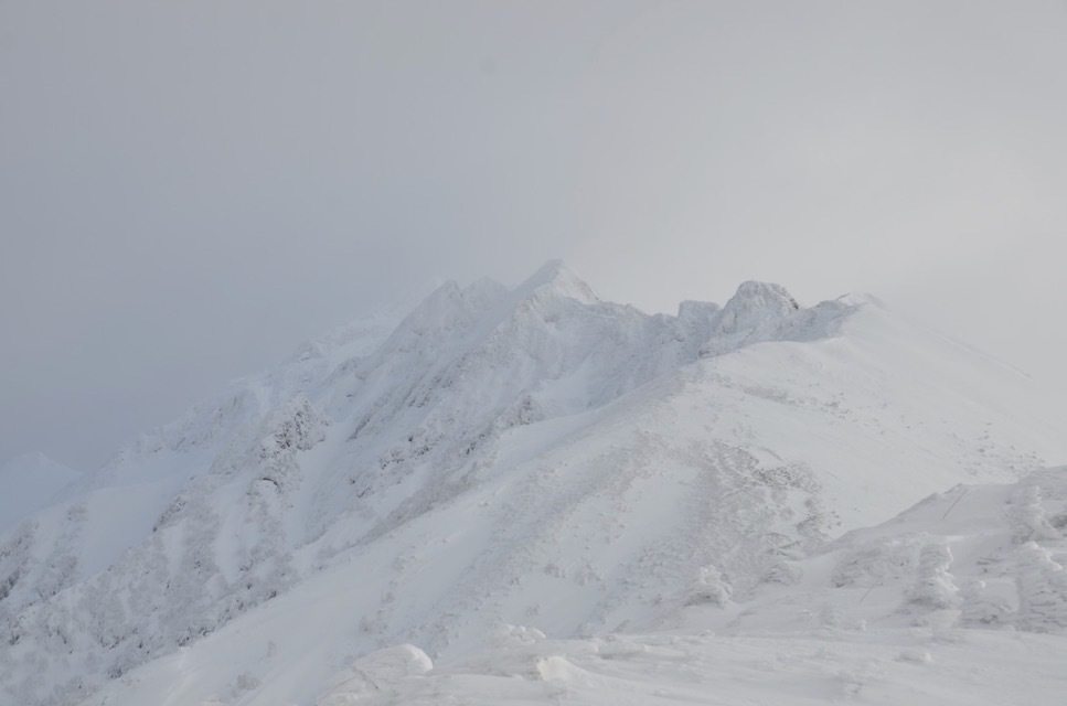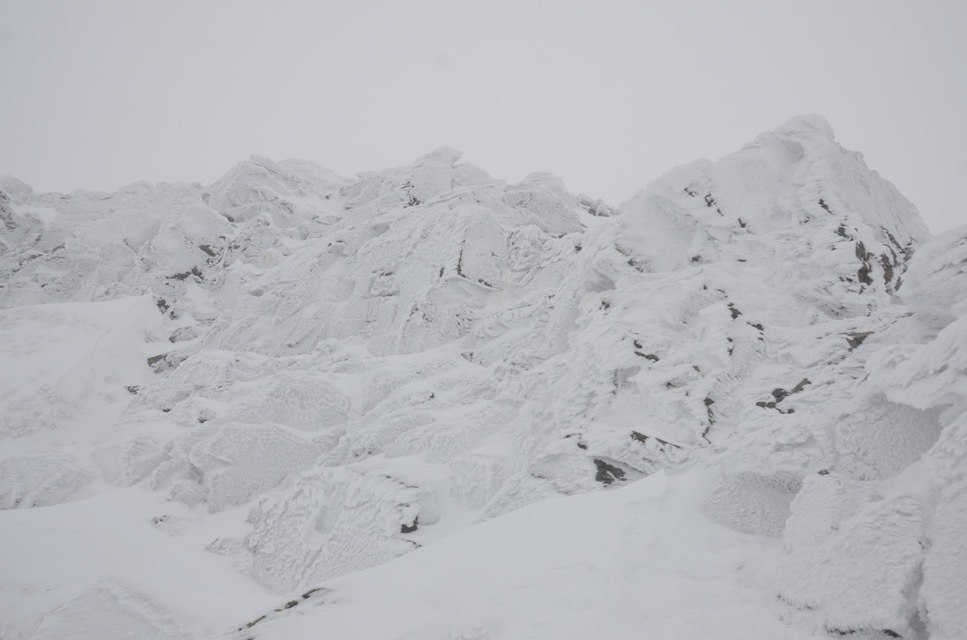 ありとあらゆるものが凍りついている今日の稜線。まるで「今日は来るな」と言われているかのようです。今日は独標で戻ろうと決断し、近づいていきます。