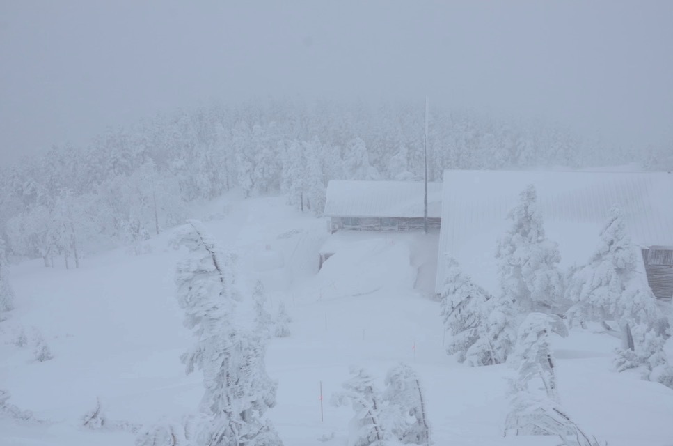 しばらくすると雲が抜けてきました。日が射すようになり真っ白に化粧をした木々が美しく輝いています。もうこれだけでも酒の肴になりますね。おつまみも用意していたのですが結局景色見ながら呑んでいたのであまり手をつけなかったです。