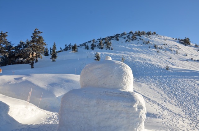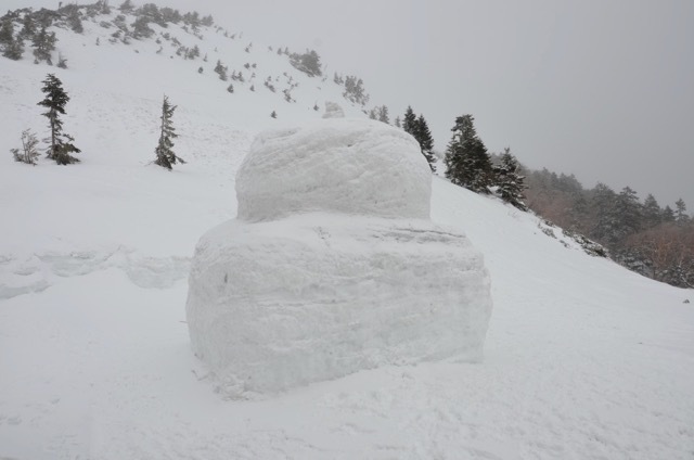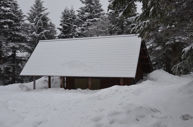雨が降り気温が高かった影響で小屋周辺の積雪は2ヶ月ぐらい前にタイムスリップしたような状態になっていました。