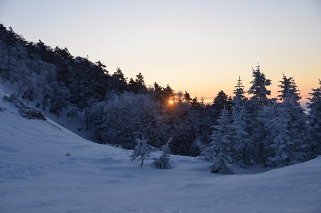 おそらく夕日はこの写真の位置に沈んで行くはずです。今日は綺麗な夕日が見られそうですね。その頃には自分はすでに下山していますが・・・