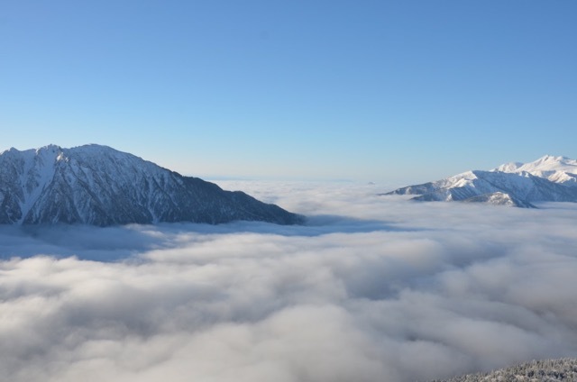 昨晩、皆で呑んで楽しい時間を過ごせたこと、山荘の常務と気象の話などたくさんさせていただいたこと、そしてここに来るまで完璧な青空と白く美しい峰々を目に焼き付けて来たことなどなど・・・