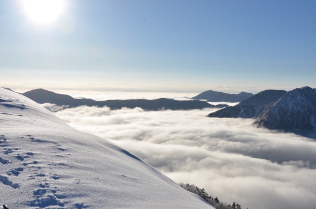 しっかりしたトレースが残っていたので利用させていただきました。この部分は飛騨側斜面で凍結も心配していたのですが問題なくクリアできました。