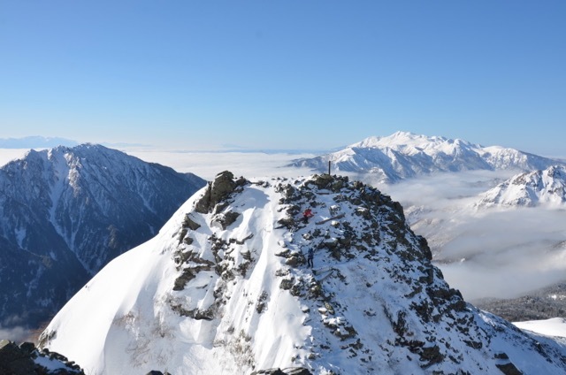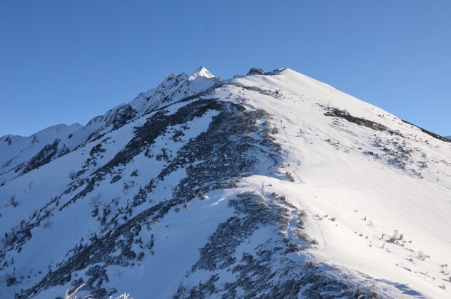 この見極めが大事ですね。冬だから冬ルートと固執するのではなく、「今はどちらのルートが最善なのか」を判断する能力や経験が必要です。実は登るときに第12峰でルート選択を誤ってしまいました。なんの違和感もなく12峰の冬ルートを歩いたのですが、雪が少な過ぎて逆に危険な状態でした。夏ルートに大多数のトレースがあったので後続も夏ルートを辿ってくれると思います。