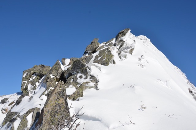 第5峰を巻く際、一部段差がある岩を乗り越えなければならず高度感も相まって通過に苦労しますので注意する必要があるでしょう。今回はパウダーも乗っていて足元が不安定でしたので緊張感が走りました。