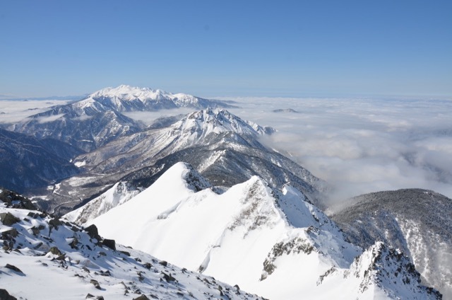 振り返ると焼岳と乗鞍岳が綺麗にそびえています。