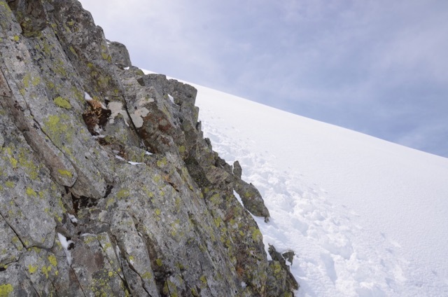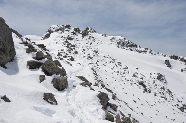 それでもアイゼンの刃が雪の下の岩に引っかかることも度々あり気が抜けない状態で、やはり春なんだと感じます。