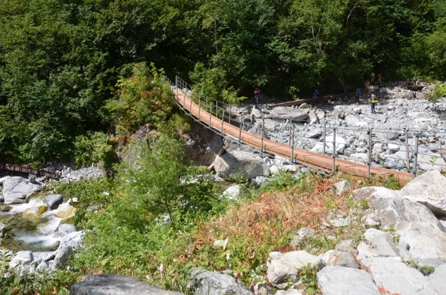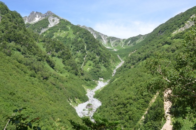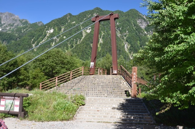 本谷橋は横尾から涸沢の地形的な中間地点です。「地形的な」という言葉をあえて入れたのはここから先が本格的な登りとなるので、高度でいえばまだ4分の1にも満たないくらいでしょうか。
