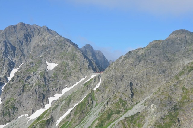 こうやって遠くから眺めている分には「すごいなー」で終わってしまいそうですが、実際に大キレットを踏破すると生きるか死ぬかの大変な思いをすることになります。大キレットはとにかく規模が大きいのと飛騨泣きのように岩を登れど登れど終わり見えてこないという一種の絶望感に近いものを感じますが、踏破したときの達成感は半端ないです。