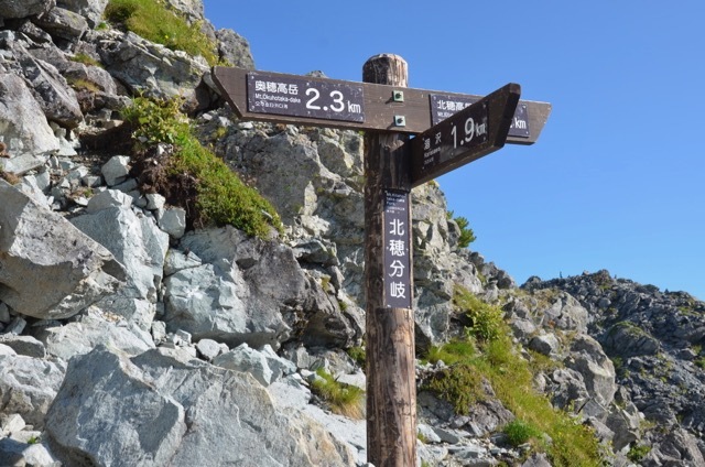 ここからは3方面、涸沢、北穂高岳(北峰)、奥穂高岳に分岐します。今日の宿泊先である穂高岳山荘は奥穂高岳方面ですが、まずは北穂高岳に登頂すべく北穂高岳方面に足を運びます。