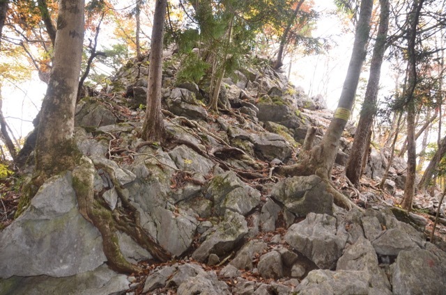 稲村岩の後ろに回り込みました。GPSのデーターを見ると地図上の登山道と軌跡に違いがあるので、もしかして新たな登山道に付け替えられたのかもしれません。登ってくる途中に使われなくなった橋があったのもそのためかもしれません。