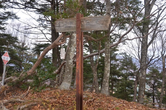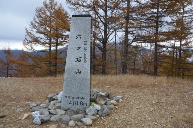 六ツ石山登頂。分岐から登り返してすぐのところが六ツ石山です。ここも先ほどと同じ立派な道標が建てられています。