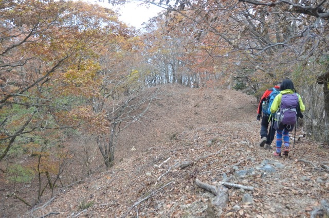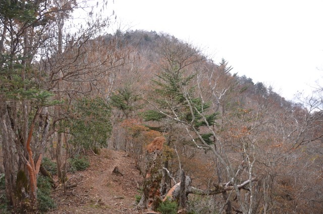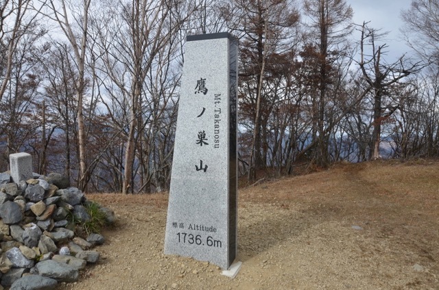 ヒルメシクイノタワという場所に到着。鷹ノ巣山の手前の峰になります。この近辺は針葉樹が多いせいか、季節的な変化が感じられません。