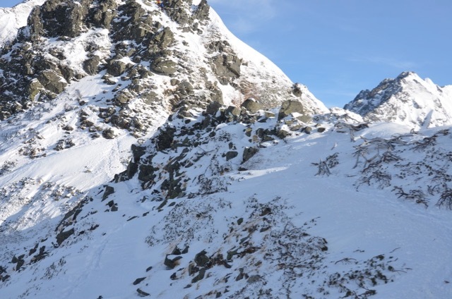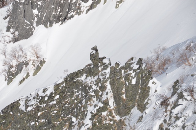 巻いていく場合は岩の上に雪が被さっているだけの時がありますので、知らずにアイゼンを踏み込んで滑らないように注意した方が良いと思います。