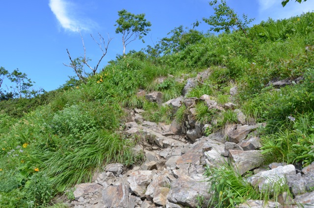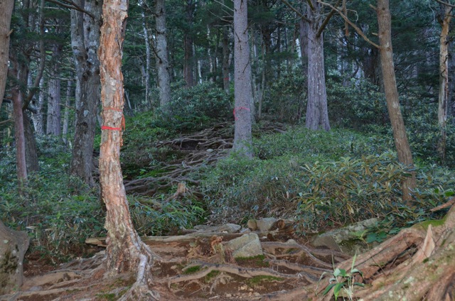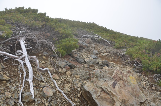 森林限界を割り込むので樹林帯の中に入って行きます。