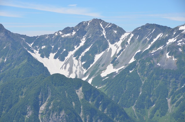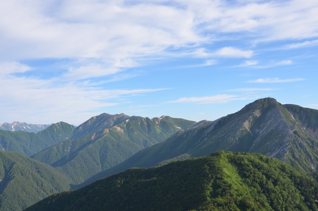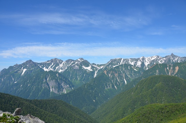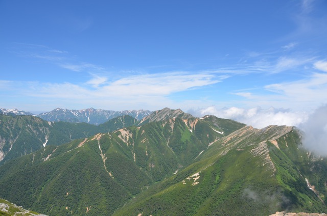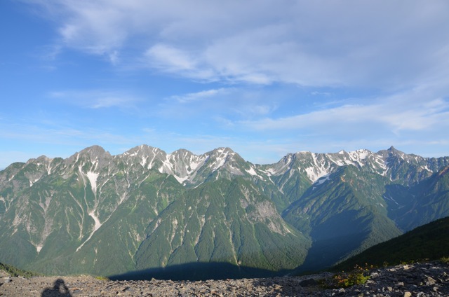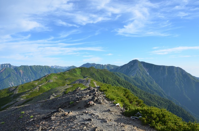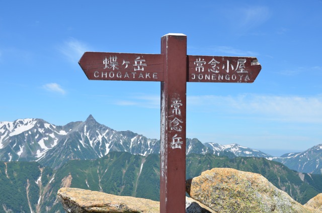 蝶槍からは常念岳やその先の大天井岳などが一望できます。