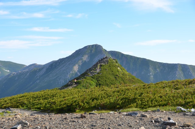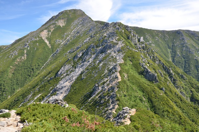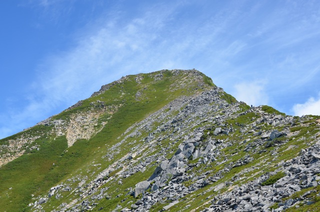 最終的には小高いピークを上り詰めると常念岳の最後の登りが見えてきます。