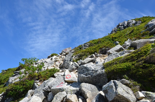 頂上までもう少しです。依然として岩場である事には変わりありませんが、目指す頂上がすぐそこに見えてきたというのは大きいです。