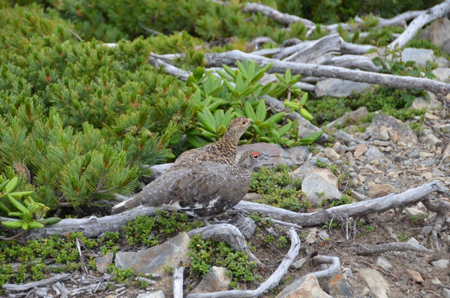帰り道、蝶槍を過ぎて蝶ヶ岳へ向かっている途中で雷鳥の夫婦に出合いました。