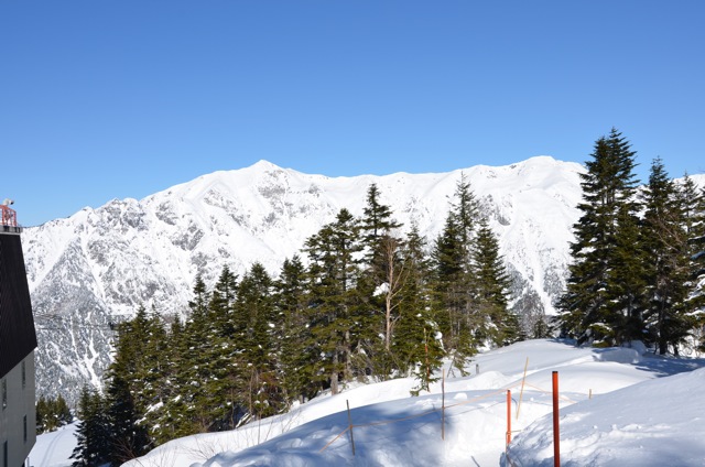 笠が岳が綺麗に見えます。笠が岳はどの方面から見ても笠のように見えるらしいですよ。これは新穂高ロープウェイで仕入れたネタです。