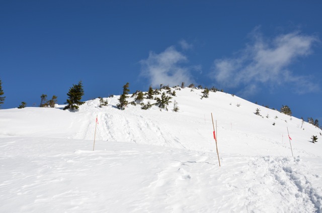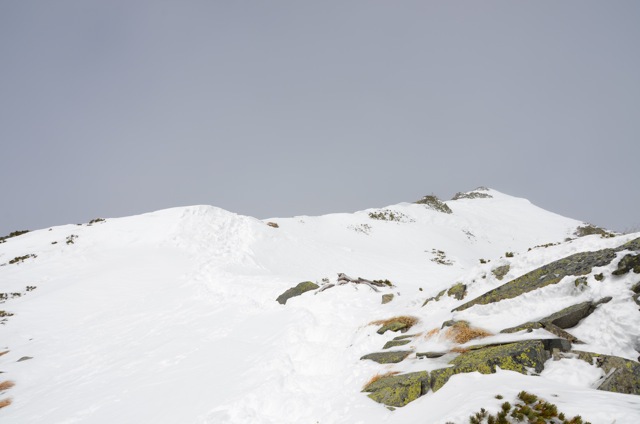 先ほどの開けた場所から少し登って行くと山頂までの稜線が目視できる場所に来ます(冬ルートと夏ルートでは若干の違いがあります)。