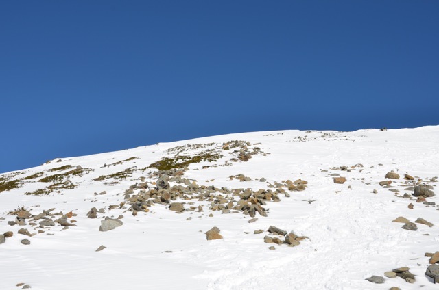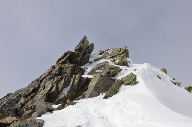 ここまで来ると一安心です。変な話ですが、万が一滑落した場合、この時期は雪の上を滑って行くので一命を取り留める可能性はあります。ですが独標から第9峰、とりわけコブの周辺は滑落したらまず命の補償はありません。はるか下の岩にたたきつけられる事になります。