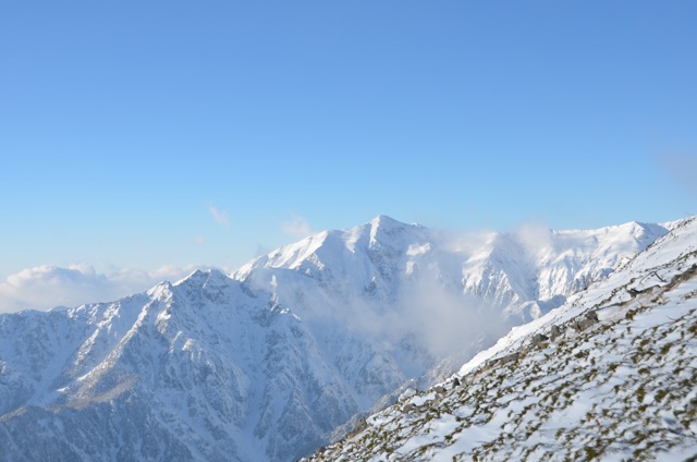 笠が岳方面は完全に雲が取れて先ほどの稜線と比べると別の日の写真でしょ〜、なんて思われるくらい別世界が広がっていました。