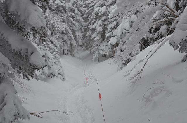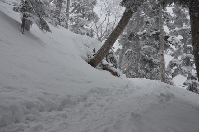 ご覧のように両側切れ落ちています。夏道はこの峰を巻いていきますが、この時期は峰の上をいきます。