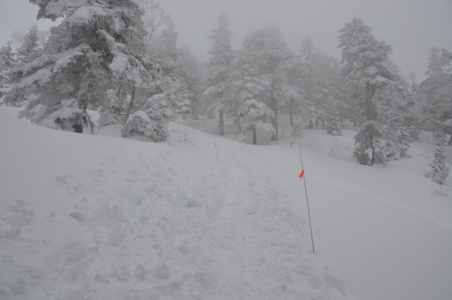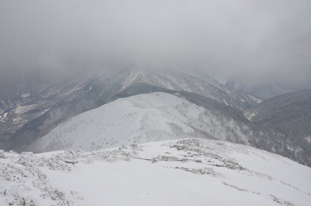 冬の山というのはその時々で全く表情が違うものですね。晴れた日は写真の箇所は稜線がくっきり見えてとても快適に登れるのですが、一つ間違えるとこんなになってしまうのですからね。