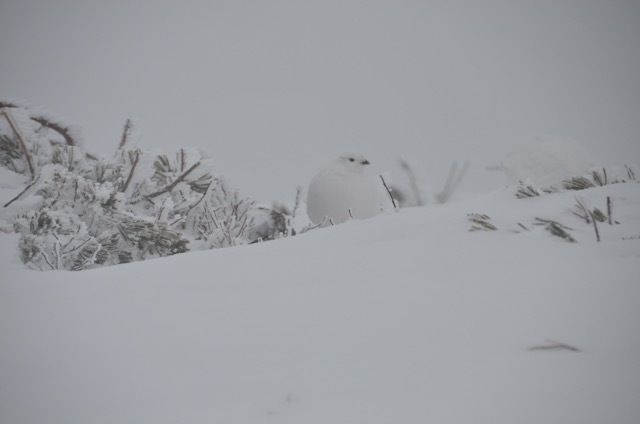 夏の時期には何度か出会いましたが、冬の時期の真っ白な雷鳥は初めてです(正確には過去にちょこっとだけ見たことはありましたが、まじまじと見るのは初めて)。