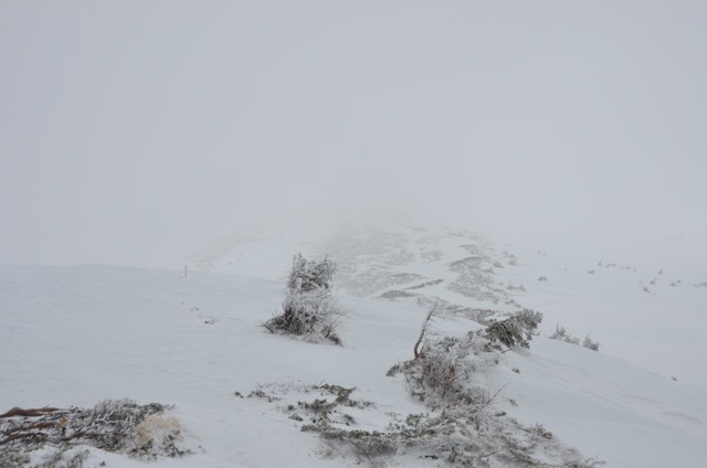 ただし、全くのホワイトアウトではなく少なくとも10m程度は視界が担保されている状況ですし、雲の流れによってはかなり先まで展望が利きますので独標まで登ることにします。