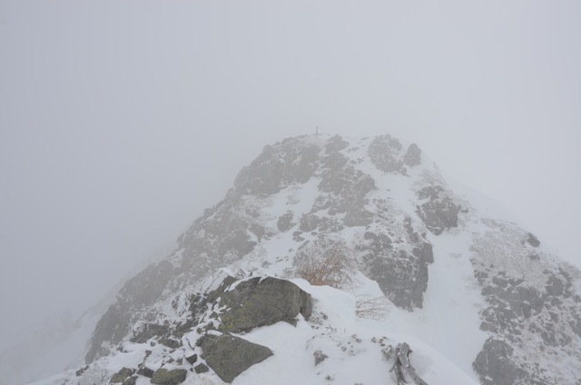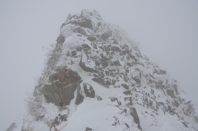 この独標直下は今回のような条件では雪が吹き溜まることが多く、ピッケルを突き刺しても、アイゼンを蹴り込んでもグズっと崩れ落ちてしまい以外と難所なのですが、今日はここも雪が締まっていて楽に登ることができました。
