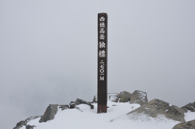 天候は前回とほぼ同様の条件で、一言で言えば「暴風で視界なし」。なので今回も独標でストップしておきました。なかなか、穂高の峰々は美しい姿を見せてくれませんね。