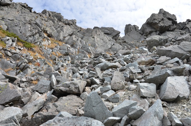 残りの200mといっても、岩をよじ上って行くので決して楽ではありません。ルート場を行く限りは浮いている岩はそう多くないのですが、それでも危ないなと思う岩はたくさんあり、実際浮いていたものも結構ありました。